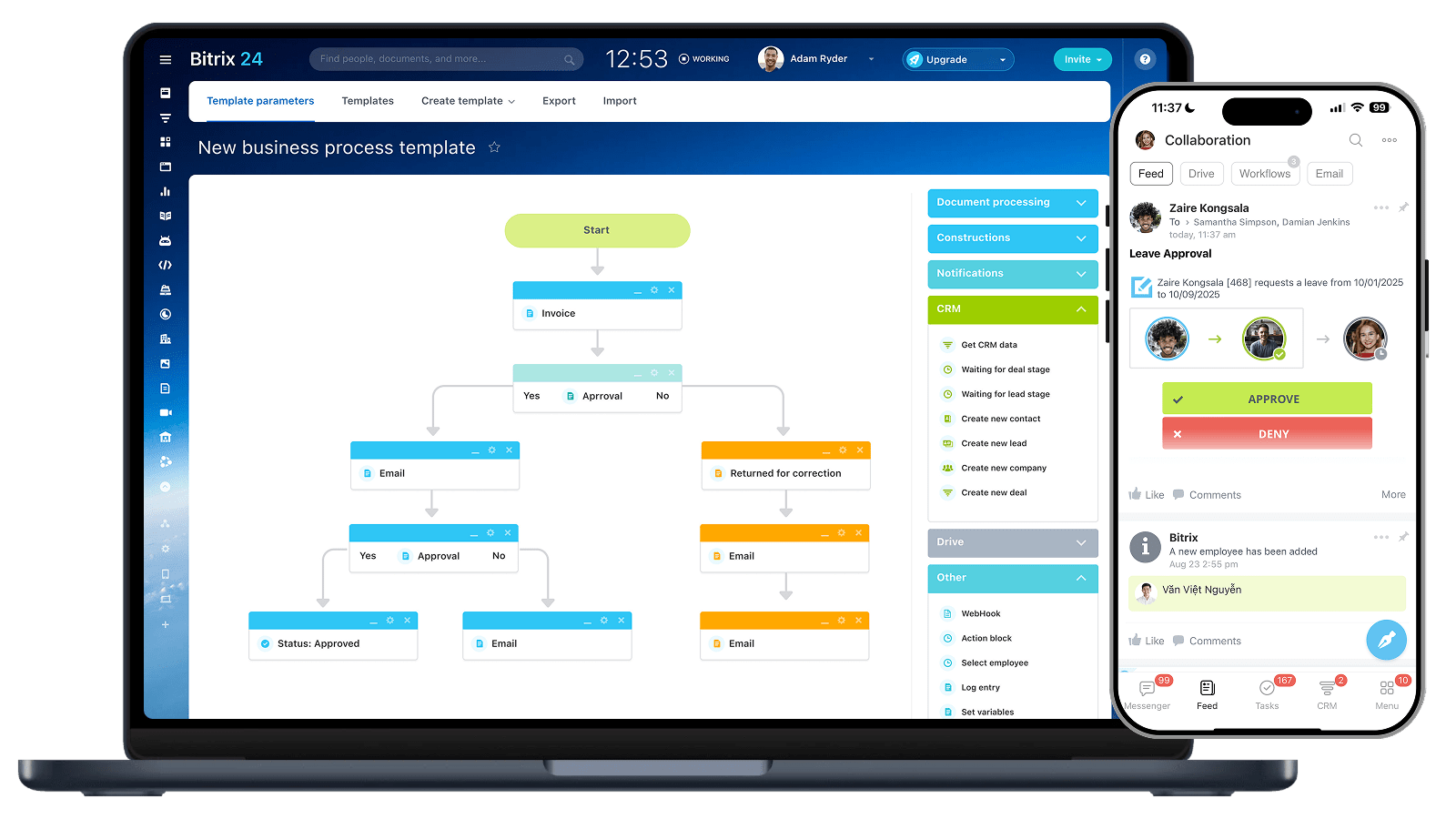 Sales, tasks, workflows, business processes