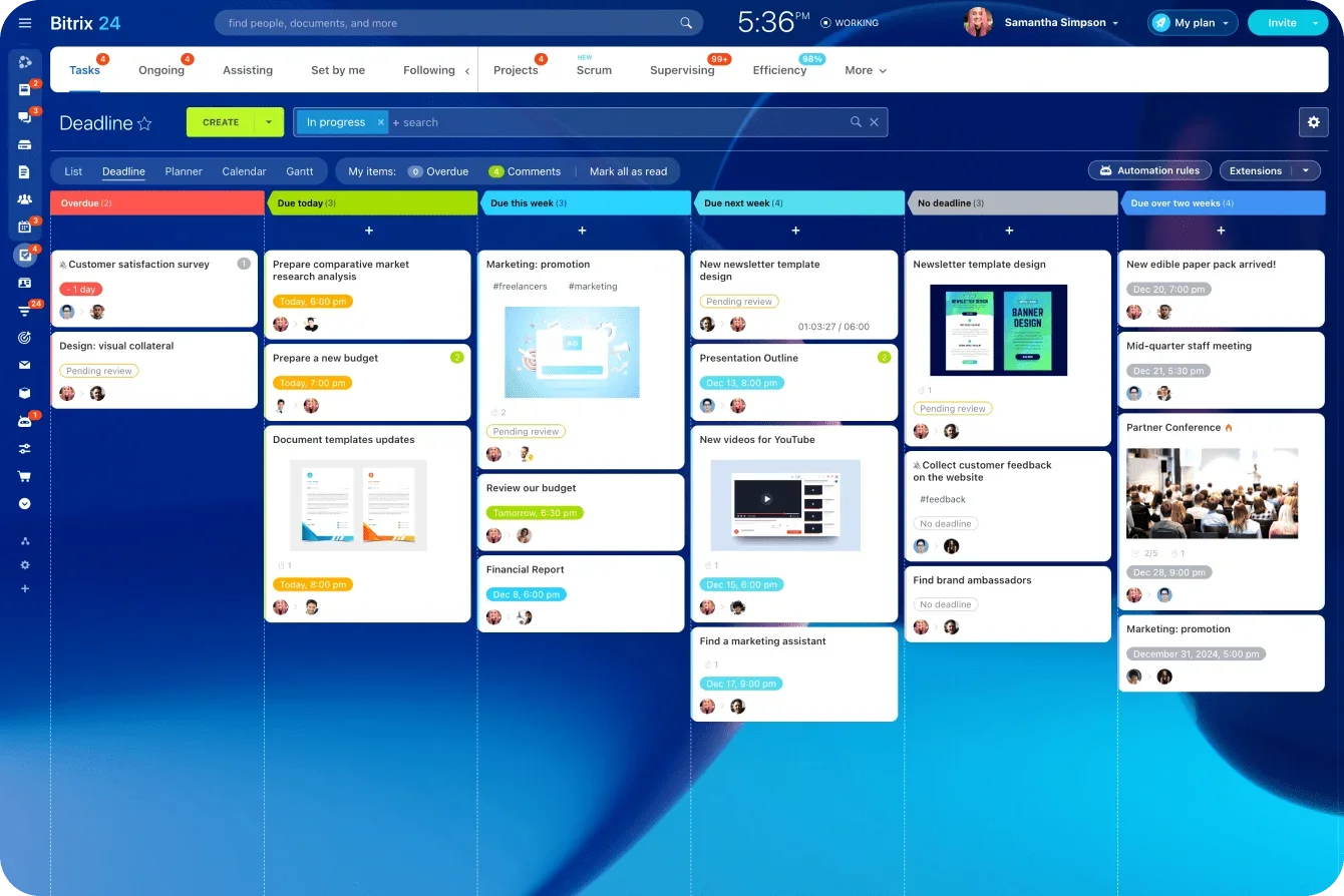 When does Bitrix24 make the biggest difference? When you need deals to turn into assigned work: tasks, approvals, onboarding steps, and delivery projects tied to the customer record so handoffs don’t break.